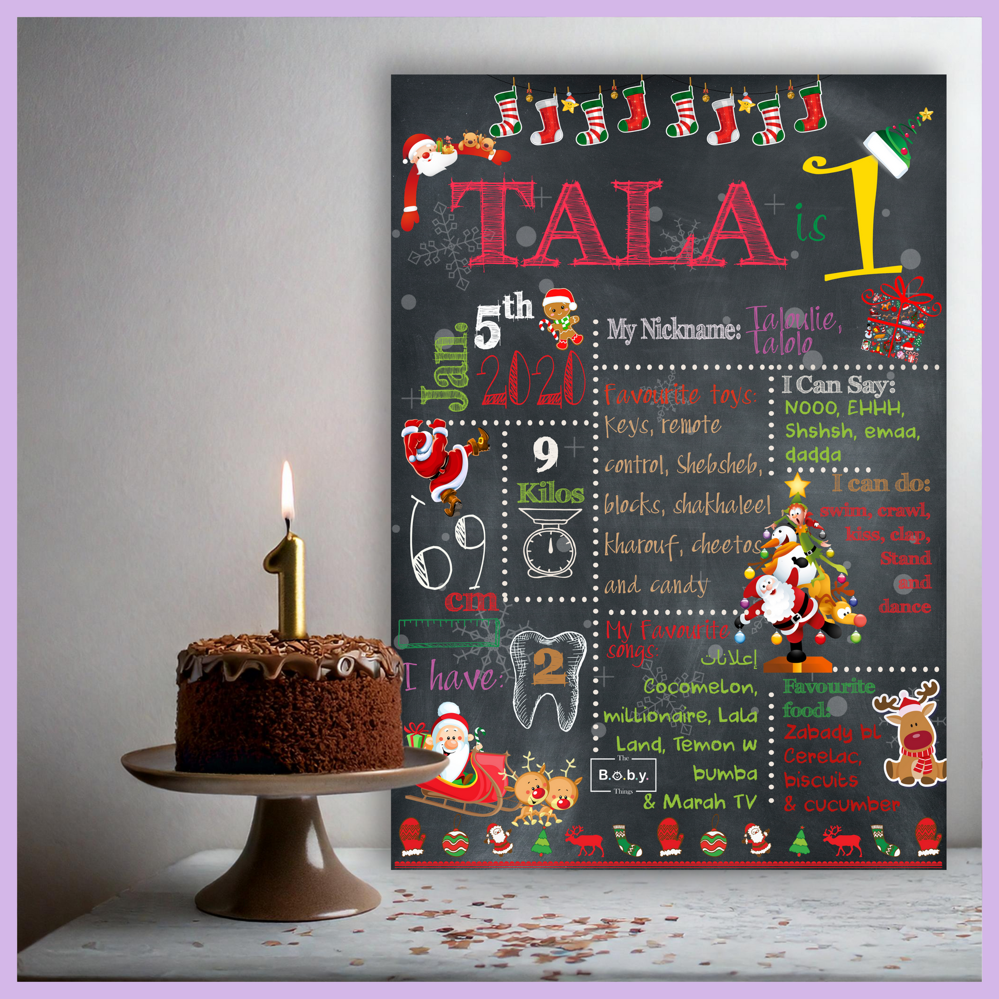 لوحة طباشير لإنجازات أعياد الميلاد مصممة لتسليط الضوء على إنجازات طفلك في عيد ميلاده الأول.